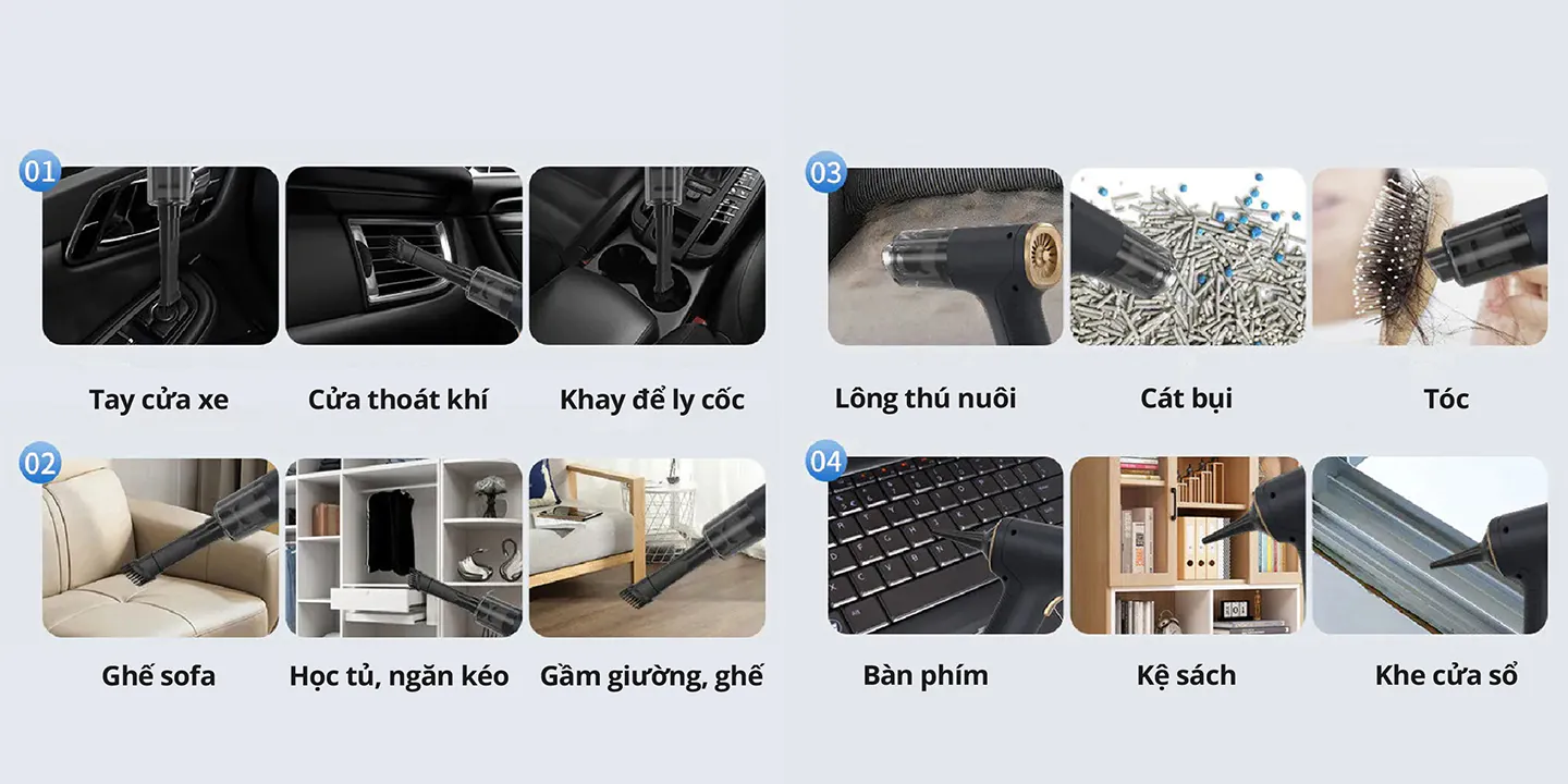 Mình có thể dễ dàng sử dụng máy để làm sạch mọi ngóc ngách trong nhà, từ bàn phím máy tính, kệ sách cho đến những khe cửa hẹp mà trước đây mình phải dùng tay để lấy bụi ra.