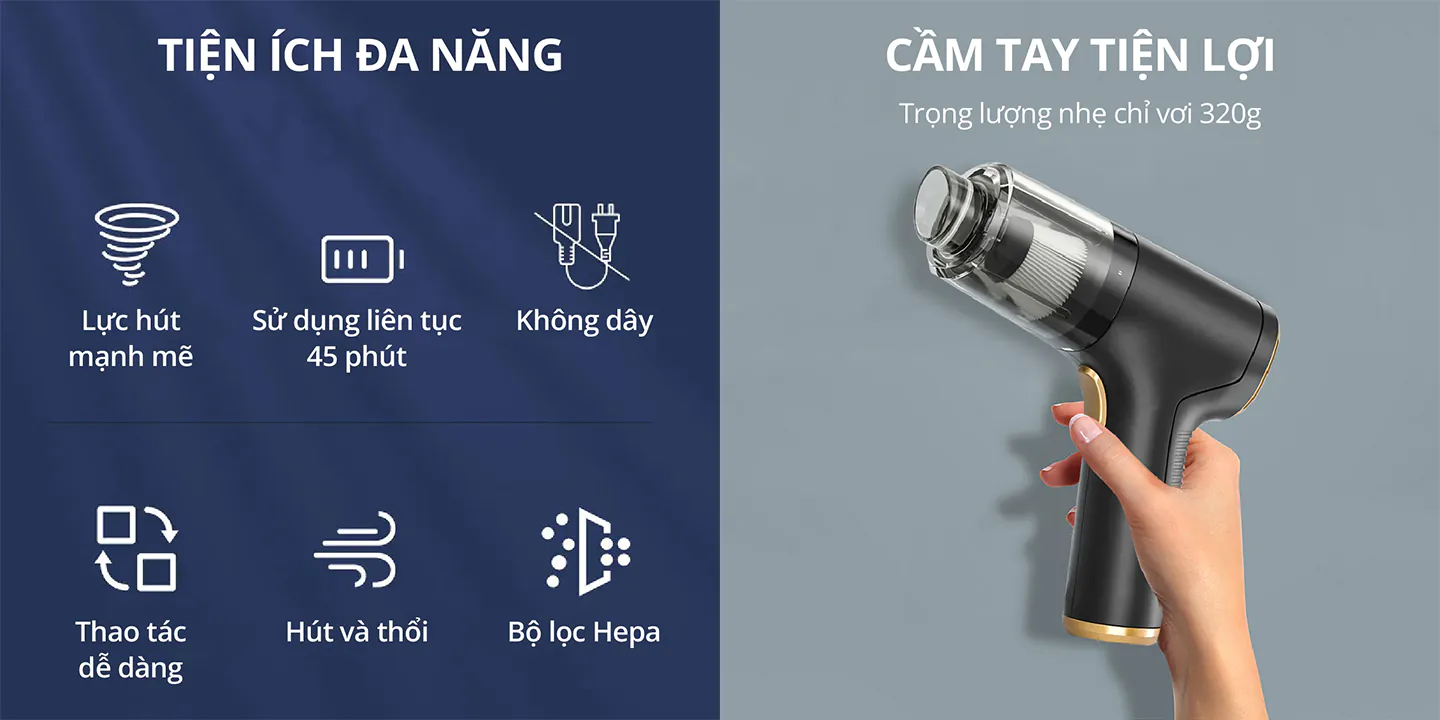 Với thiết kế hiện đại, nhỏ gọn và tính năng đa dạng, sản phẩm này không chỉ giúp mình và các bạn dọn dẹp dễ dàng mà còn tiết kiệm thời gian hiệu quả.